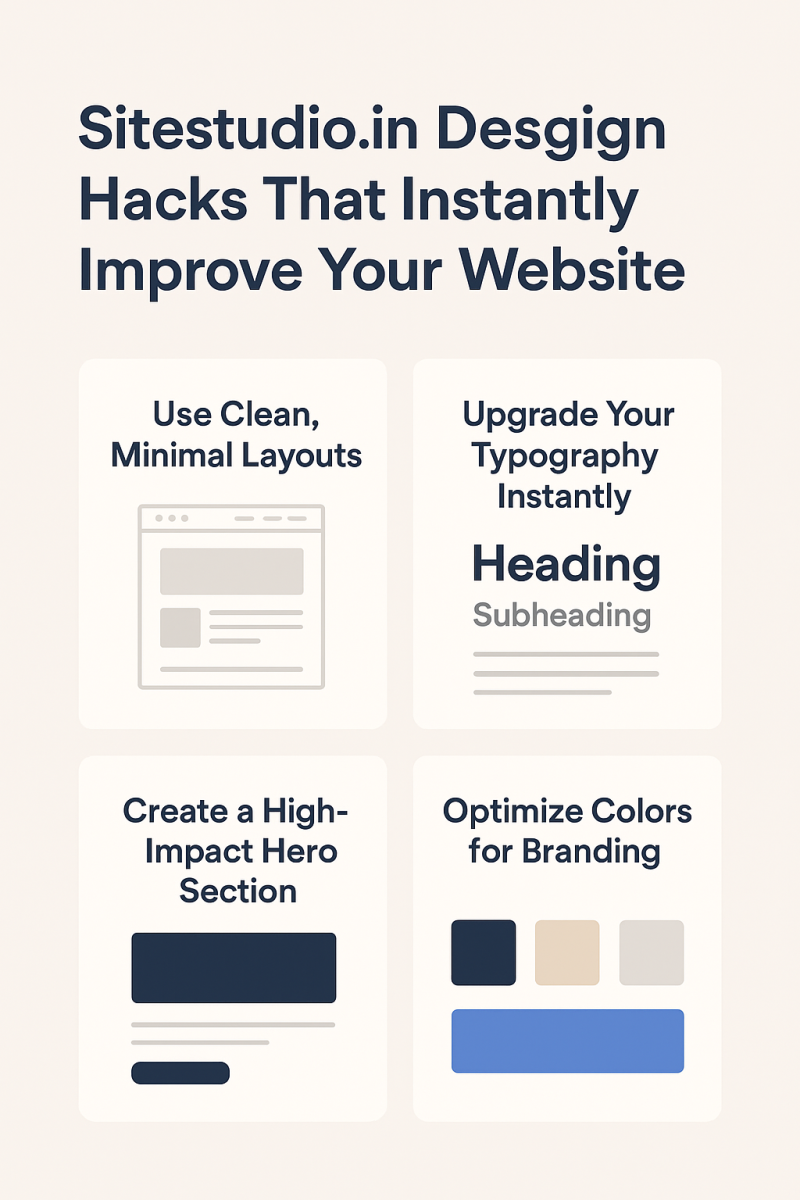Design plays a critical role in how users perceive your website. With sitestudio, you don’t need professional design skills to create a polished, high-converting site. By applying a few smart design hacks, you can instantly improve usability, engagement, and trust—without writing a single line of code.